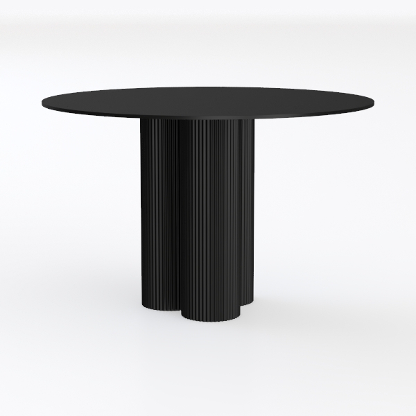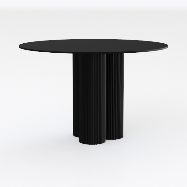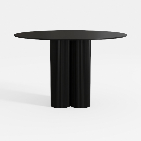 Inspired by architectural minimalism, this round table blends geometric precision with sleek design. The smooth matte black top contrasts with vertical ribbed bases, offering a striking mix of texture and modern elegance. Ideal for contemporary dining or living spaces, pair it with marble or metal accents for a polished, edgy look. Sturdy double-pillar base ensures stability, with a spacious top perfect for family meals or gatherings.