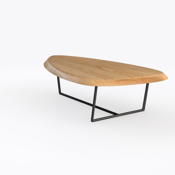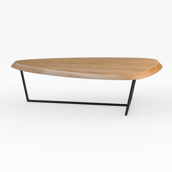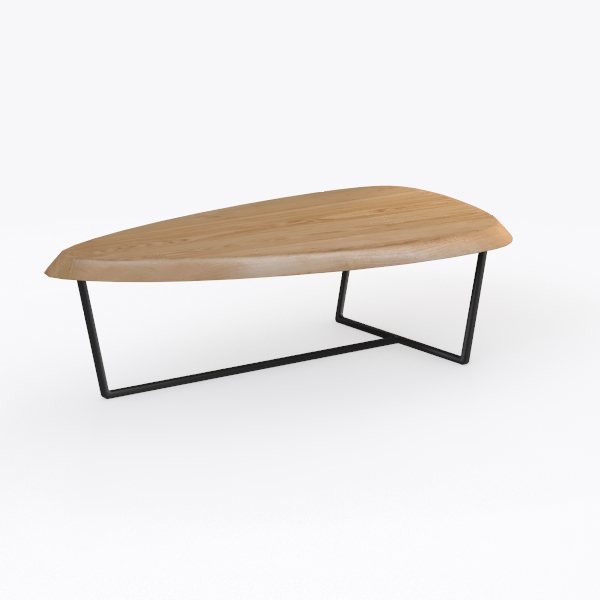 Inspired by natural fluidity, its curved silhouette mimics gentle water flow. Warm, smooth oak with visible grain offers tactile joy, sleek black metal legs add industrial contrast. Ideal for modern minimalist living rooms, pairing with neutral sofas and geometric rugs. Sturdy frame ensures stability, generous curved top provides ample space for drinks/decor, blending style and practicality seamlessly.