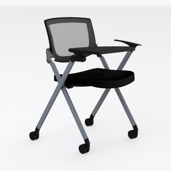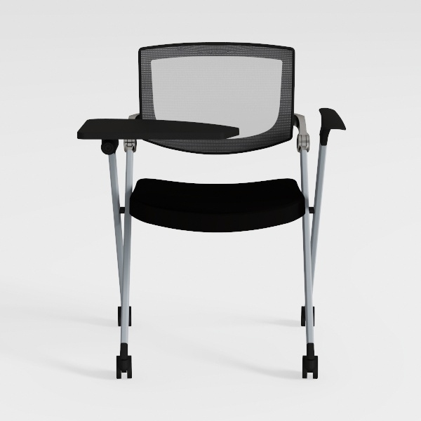 Designed for modern workspaces, its sleek lines draw from minimalist office setups. Mesh backrest ensures breathability, smooth black seat offers soft touch. Sleek metal legs add industrial elegance, balancing sturdiness and lightness. Perfect for contemporary offices or home studies, pairs with wooden desks and geometric lamps. Integrated armrest desk holds laptops, smooth casters ensure easy mobility; contoured seat provides all-day comfort for long work hours.