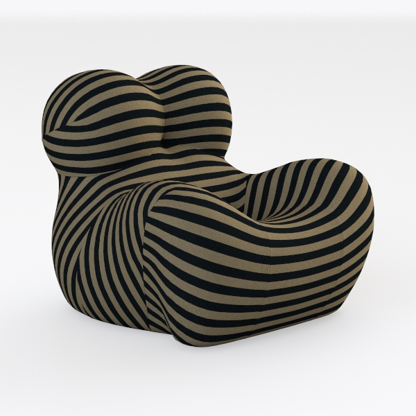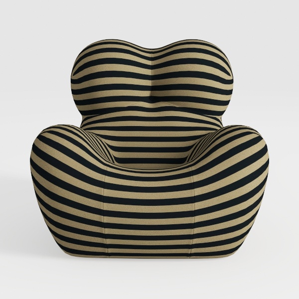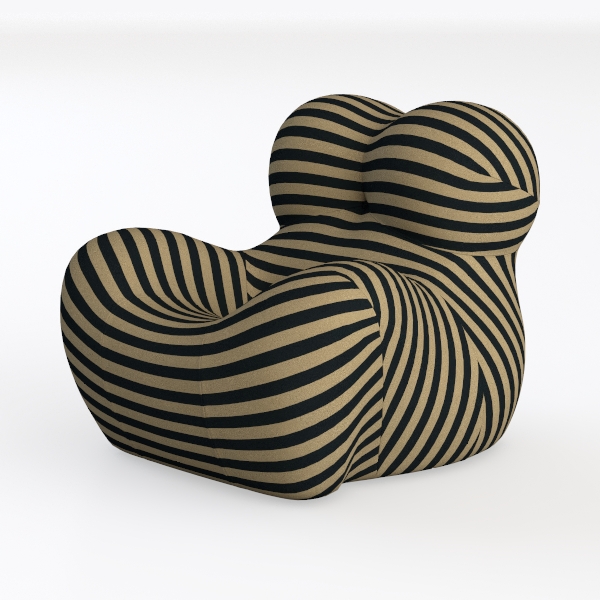Inspired by organic curves and mid-century modern artistry, this armchair features soft, textured fabric with bold black-and-beige stripes. Its curved silhouette and plush, enveloping shape add dynamic energy, ideal for a contemporary living room paired with wooden side tables and a geometric rug—blending warmth and artistic flair. Generous armrests and deep seat offer exceptional comfort, encouraging relaxed lounging.