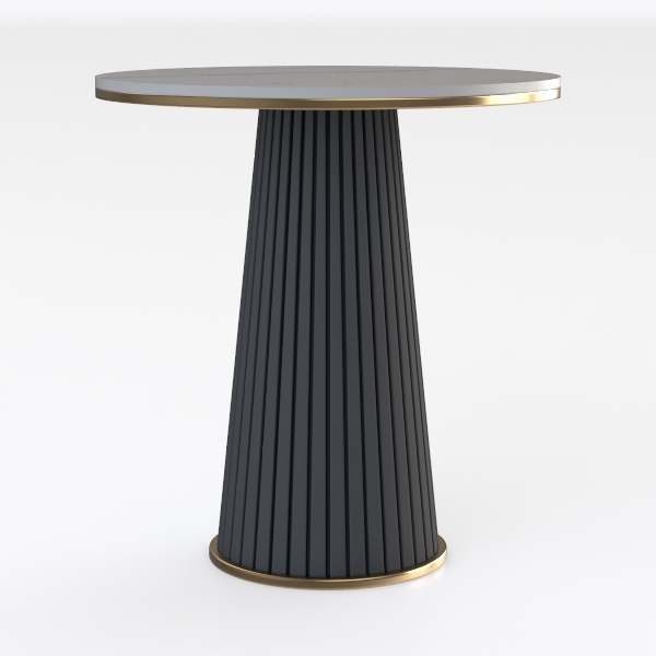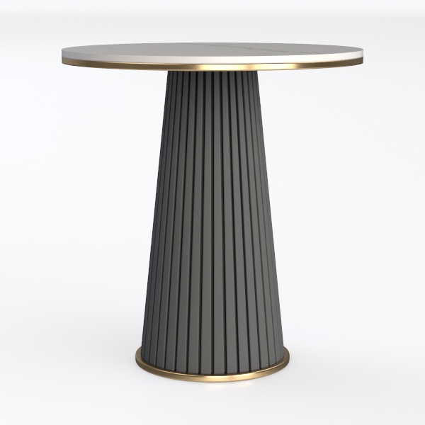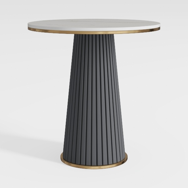 Inspired by classical architectural columns, this piece blends timeless elegance with modern minimalism. A smooth white marble-like top contrasts with a matte gray fluted base, accented by a sleek gold rim, creating a refined visual appeal. Ideal for modern minimalist or contemporary luxury spaces, it enhances living rooms, studies, or dining corners. The compact circular top offers ample space for decor, while the stable fluted base ensures durability and balance.
