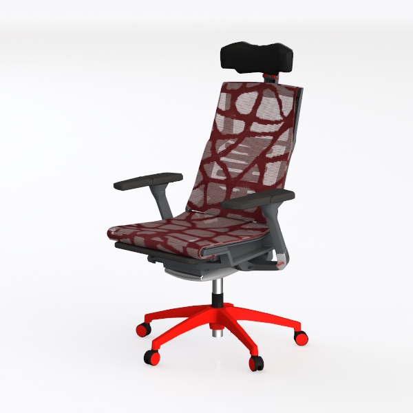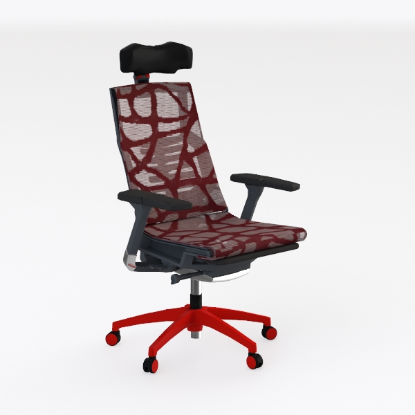 Inspired by urban art and ergonomic needs, this chair features breathable mesh with dynamic red abstract patterns, soft yet supportive. Sleek black headrest and vibrant red base add modern flair, ideal for minimalist workspaces. Adjustable headrest, 360° swivel, and smooth-rolling casters ensure comfort and easy movement, pairing well with wooden desks and metal shelves.
