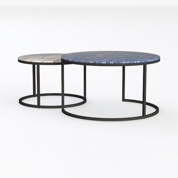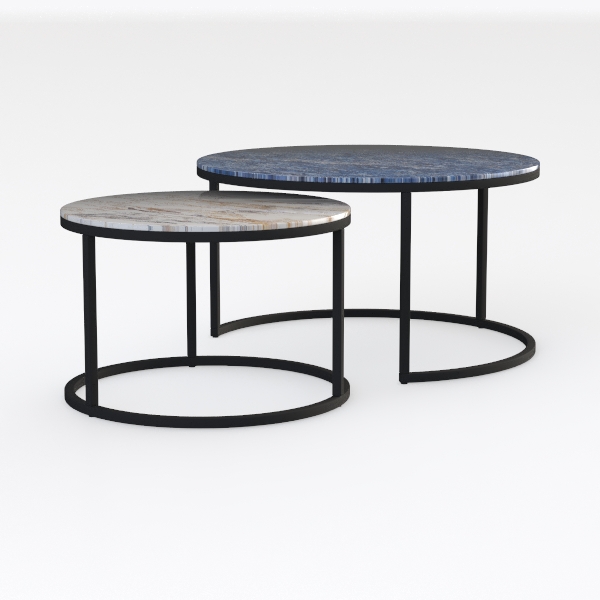Inspired by natural stone’s organic patterns, these nested round tables blend smooth, veined marble tops—cool blue and warm beige—with sleek black metal frames. Polished surfaces offer a tactile contrast to minimal lines, crafting a balanced, contemporary vibe. Ideal for modern minimalist or Scandinavian living rooms, pairing beautifully with neutral sofas and soft lighting, the varying sizes accommodate decor and gatherings, saving space while boosting functionality.