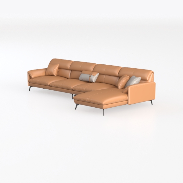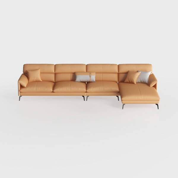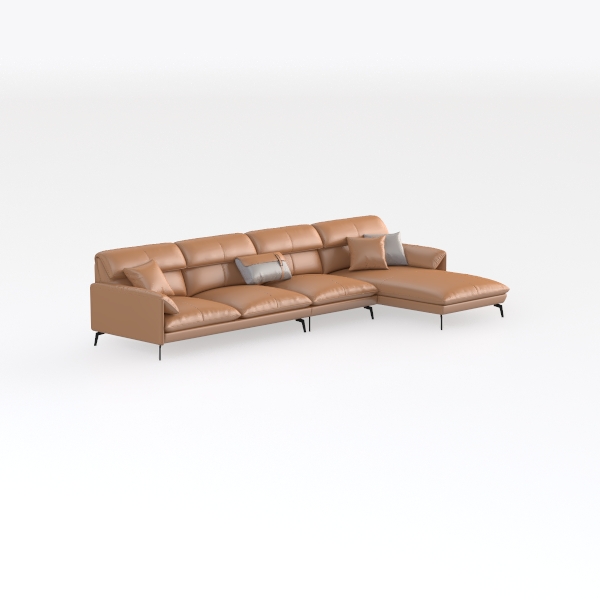 Beyond its aesthetic charm, the sofa prioritizes practical comfort: the generous L-shape offers ample space for both solo relaxation and gatherings, with high-density foam cushions that cradle the body and a deep seat depth that encourages sinking into its embrace. The sleek, black metal legs provide a stable, lightweight base, while the terracotta leather adds warmth, making this sofa not just a functional seating solution, but a warm, inviting anchor for any living space.