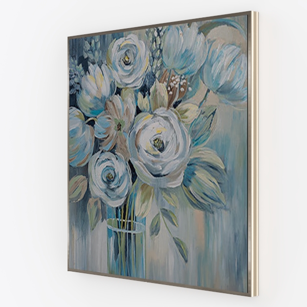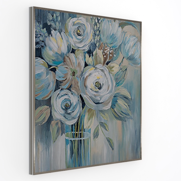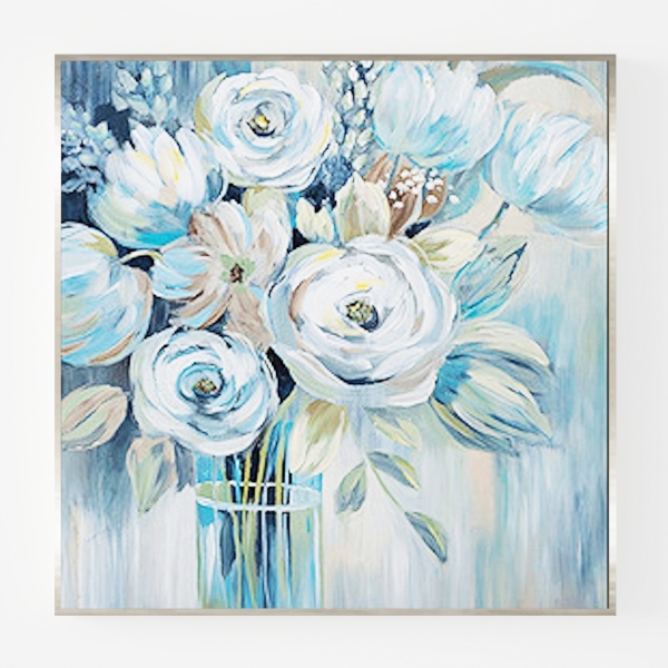 Bathroom Flower Picture Wall Art White and Blue Floral Print on Canvas for Gray Powder Room Decor 15 x 12