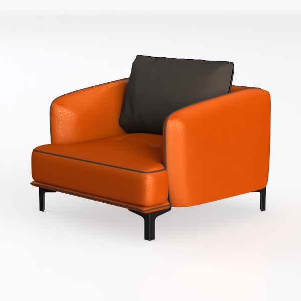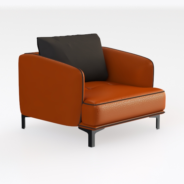 This armchair captures the essence of modern design, blending bold color with minimalist elegance. Its inspiration lies in the interplay of warmth and structure, taking cues from how vibrant yet balanced pieces can transform a space from ordinary to inviting. The star of the show is the rich, terracotta-orange upholstery—its subtle, pebbled texture feels surprisingly soft to the touch, offering a tactile comfort that invites lingering, while the deep, curved backrest provides gentle support for the shoulders and head.