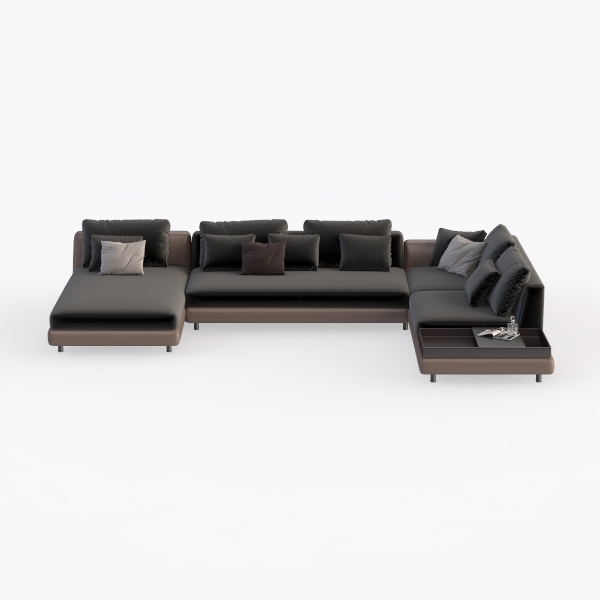 Perfect for a modern-luxury living room, it pairs effortlessly with marble coffee tables, metallic accent lamps, and matte black sideboards. The deep, generously padded seats cradle the body, while the integrated side table—complete with a hidden storage shelf—blends utility with style, ideal for tucking away remotes or displaying small decor. Whether hosting friends or unwinding solo, this sofa merges timeless design with practicality, making it a versatile and inviting centerpiece for any home.