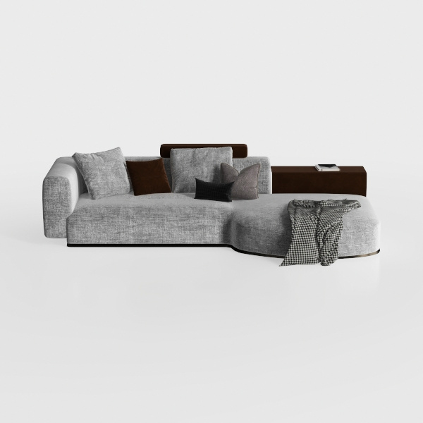 Inspired by the gentle curves of natural landscapes, this living room piece merges sculptural form with understated luxury. The light gray upholstery, crafted from a soft, textured fabric, feels like a warm embrace—its subtle weave catching light to create a tactile depth that balances sleekness with coziness. The sinuous L-shape, with rounded armrests and a flowing silhouette, avoids harsh angles, making it feel both intentional and effortlessly inviting.