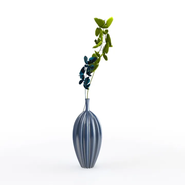 A 3D model of a potted green plant, featuring slender green palm-like leaves and a textured gray concrete pot, with a minimalist natural aesthetic. It has low polygon count and detailed foliage, suitable for interior design visualization, e-commerce, and virtual environments.