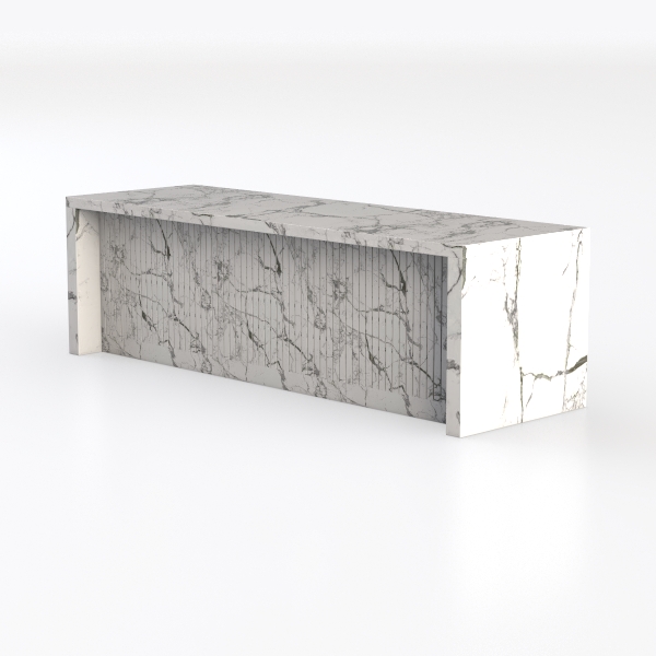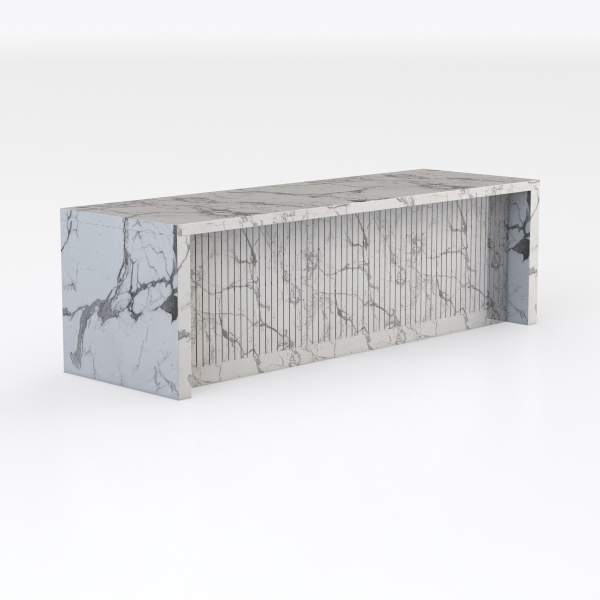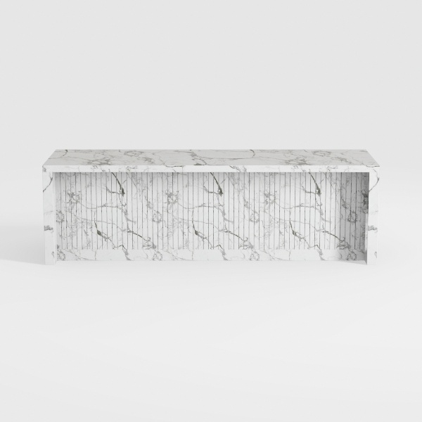 Inspired by the organic patterns of natural marble, it blends geometric precision with soft, flowing lines. The smooth, cool surface feels luxurious to the touch, with striking gray veining adding depth and sophistication. Perfect for modern minimalist or contemporary living rooms, pairing beautifully with sleek metal accents and warm wood tones. A practical yet elegant piece, its clean lines and ample space offer display and storage, enhancing both form and function.