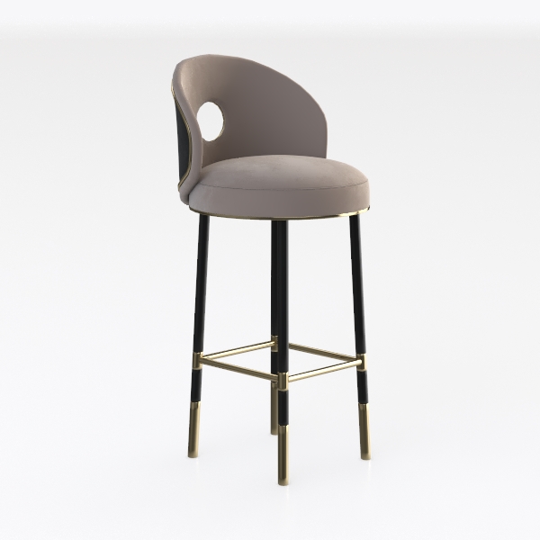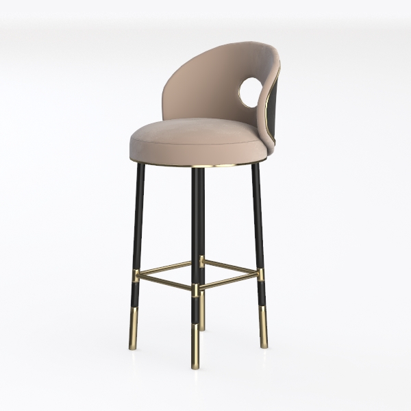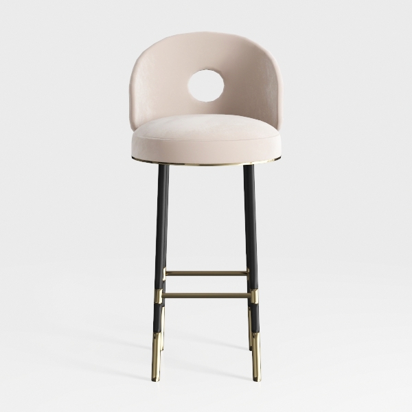 Inspired by architectural curves, its soft silhouette blends modern minimalism with timeless elegance. The plush, blush-toned seat offers a velvety touch, while matte black metal legs with gold accents add sleek, luxurious contrast. Ideal for a modern-luxury kitchen island or home bar, it pairs beautifully with marble countertops and gold lighting. A contoured back and sturdy frame ensure comfort, with height perfect for casual gatherings or evening cocktails.