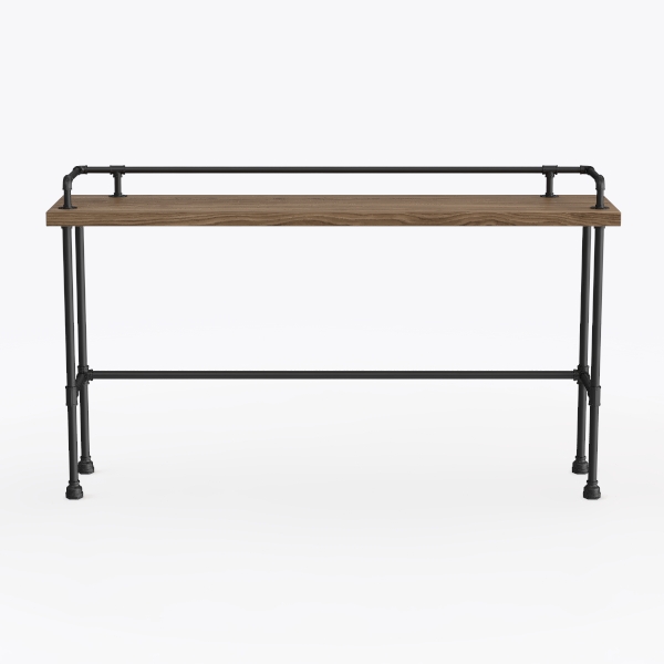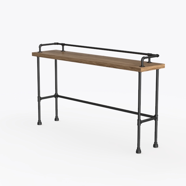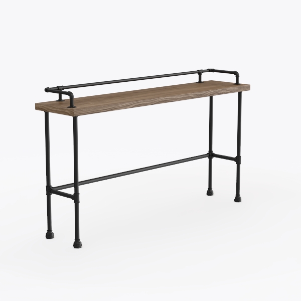 Blending industrial charm with natural warmth, the wooden top, with rich grain, offers a smooth, tactile contrast to the matte black metal frame, its angular pipes and sturdy legs exuding strength. Ideal for a modern industrial living room or cozy study, it pairs beautifully with leather sofas and vintage floor lamps, while a generous surface holds decor or books, and the stable metal base ensures lasting durability.
