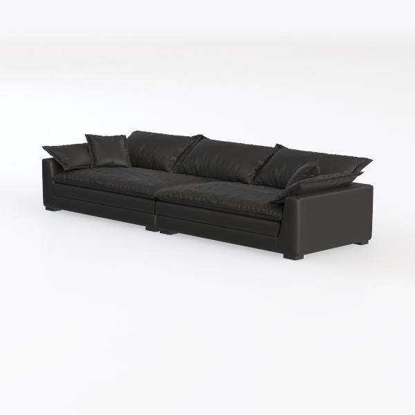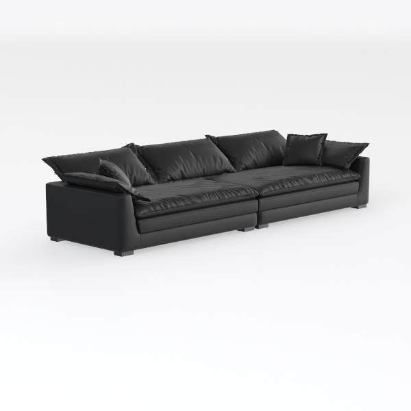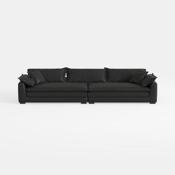 Drawing from the clean geometry of modern architecture, this sofa embodies a harmonious blend of sharp lines and soft, organic curves. Its matte black upholstery feels surprisingly supple to the touch, with a high-quality fabric that balances plush comfort with subtle structure—like sinking into a cloud of refined luxury. Visually, the deep, uniform black serves as a quiet focal point, its streamlined arms and gently sloped backrest creating a sense of lightness despite its substantial presence, making it a versatile piece for both bold and minimalist spaces.