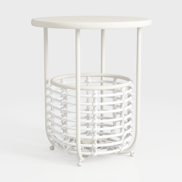 Inspired by natural weaving and minimalist design, this side table has a smooth white top contrasting with a textured woven lower shelf. Light and airy, it suits modern, Scandinavian, or coastal spaces, pairing beautifully with linen sofas and wooden coffee tables. The woven section offers hidden storage, while rolling casters ensure easy mobility.