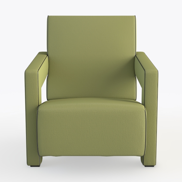 Inspired by natural foliage and sleek lines, this armchair blends organic softness with modern simplicity. Its sage-green, textured upholstery feels smooth, while angular arms add subtle structure. The muted hue and balanced proportions create a calm vibe, brightening minimalist or bohemian spaces. Pair with marble tables and woven rugs; a deep, padded seat ensures comfort for daily lounging.