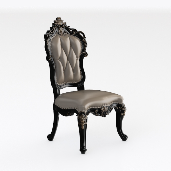 Inspired by classical Baroque, this chair blends elegance and refinement. Its black wooden frame, adorned with golden carvings, contrasts beautifully with the white leather seat, offering a smooth touch and a visually striking black-gold-white palette—opulent yet harmonious. Perfect for a vintage-luxury living room or dining room, pair it with dark wooden tables and crystal chandeliers for classic charm. The wide seat and diamond-tufted backrest provide comfortable support, while carved armrests add elegant details.
