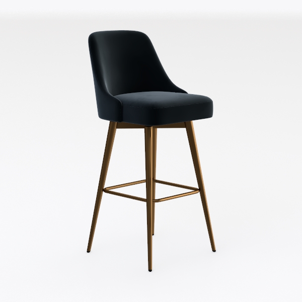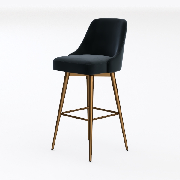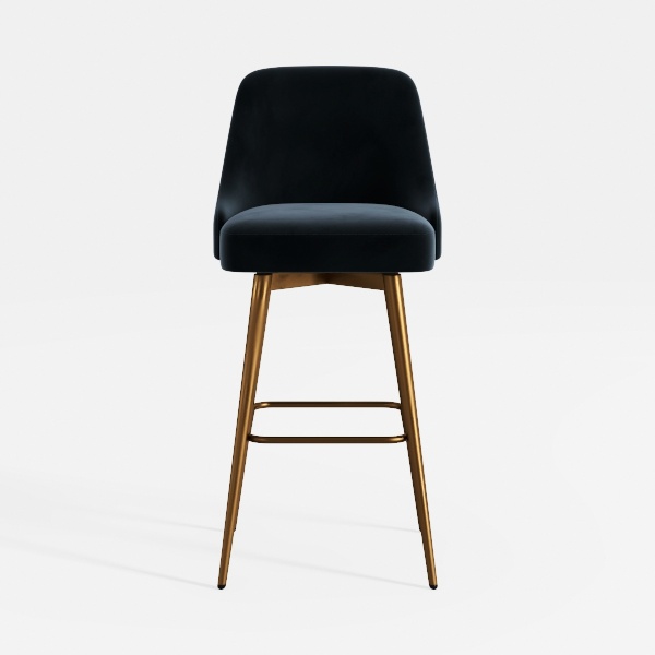 Inspired by modern minimalism and mid-century charm, its soft, plush black velvet seat contrasts beautifully with shiny gold-toned metal legs, forming an elegant, sleek silhouette. Ideal for a contemporary kitchen island or cozy bar corner, it pairs effortlessly with marble countertops and warm wood accents. Sturdy metal frame and comfortable seating, with ideal height for countertop use, ensure both style and practical daily use.
