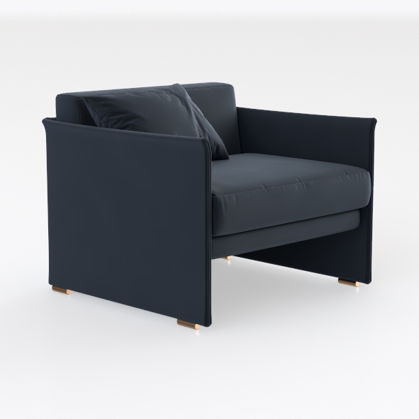 Inspired by Scandinavian design philosophy, this armchair embodies "less is more"—clean, uncluttered lines and a balanced silhouette that blends functionality with understated elegance. The sumptuously soft upholstery, a rich deep navy hue, feels luxuriously smooth to the touch, its subtle matte finish catching light gently to reveal a hint of texture. The seat is generously deep, inviting you to sink in, while the wide, curved backrest and softly sloped arms cradle the body, offering gentle support for both relaxation and casual reading.