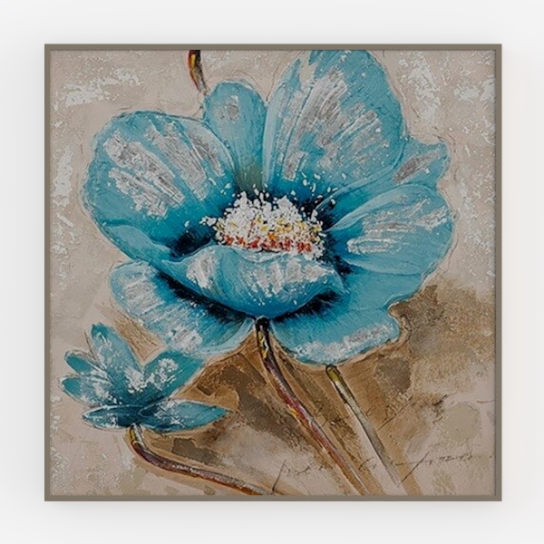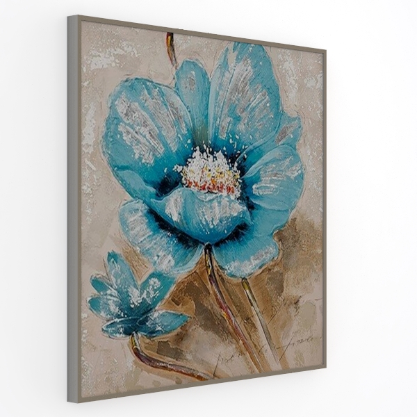 Arjun Flower Wall Art Floral Canvas Painting Teal White Gold Textured Picture Vintage Bloosom Artwork Large Framed for Living Room Bedroom Bathroom Dinning Room Kitchen Home Office Wall Decor, 40"x20"
