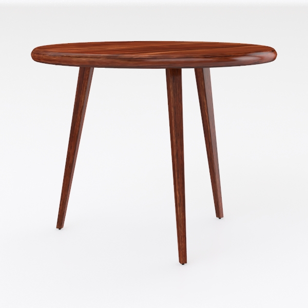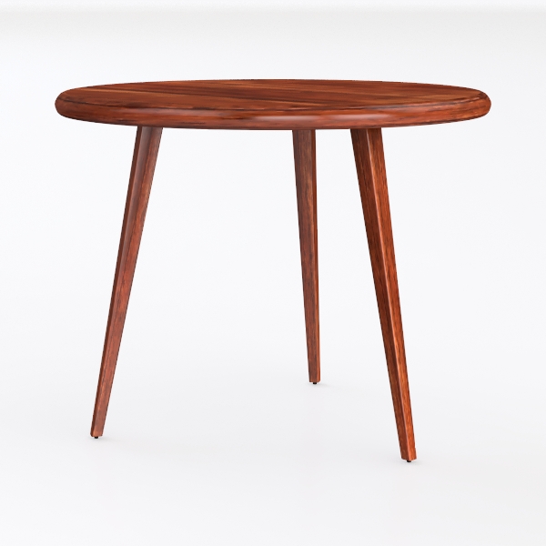 Inspired by organic minimalism, this wooden table merges natural wood grain with clean lines. Warm, smooth surface, rich deep tones, offer soft, durable tactile appeal. Sleek, uncluttered silhouette enhances modern or Scandinavian spaces. Pair with a linen sofa or mid-century armchair in a cozy living room, adding warmth. Stable tapering legs support, round top maximizes compact areas—ideal for daily use or casual gatherings.