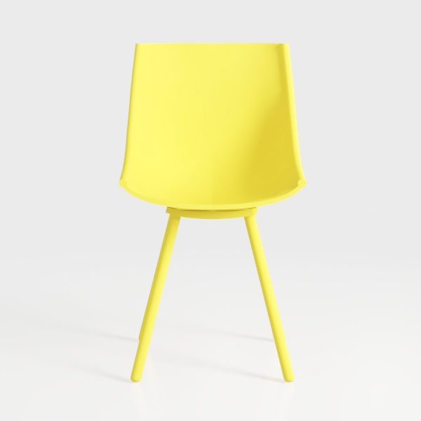 This vibrant yellow chair draws inspiration from organic curves and minimalist Scandinavian design. Its sleek, matte surface offers a cool, smooth touch, while the slender, angled legs add a modern edge. Perfect for modern dining rooms or living areas, it pairs beautifully with wooden tables and black metal accents. Lightweight yet sturdy, the contoured seat ensures all-day comfort, making it both functional and stylish.
