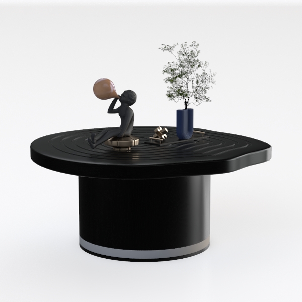 Designed to evoke natural fluidity, its spiral-textured black surface mimics rippling water, blending minimalism with organic softness. Smooth yet tactile, the matte finish enhances modern allure, with a sturdy base ensuring stability. Ideal for a contemporary living room, it pairs beautifully with neutral sofas and geometric decor, elevating the space’s sophistication. The spacious circular top offers ample room for decor—sculptural vases, small trinkets—balancing style and practicality.