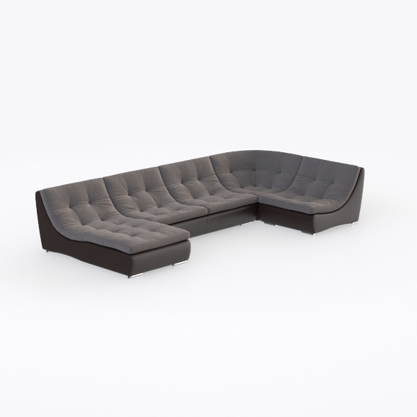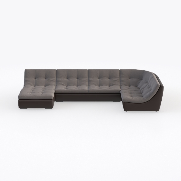 Drawing inspiration from the clean lines of modern architecture and the understated warmth of mid-century design, this L-shaped sofa merges sleek minimalism with everyday usability. The seat and backrest feature soft, tufted upholstery in a muted gray tone, where each square tuft adds subtle texture—gentle to the touch, it balances plush comfort with structured support, inviting both casual lounging and relaxed gatherings. The deep, rounded arms curve gently, cradle-like, while the low-profile, dark-hued base grounds the piece, creating a striking contrast that keeps the eye drawn to the upholstery’s softness.