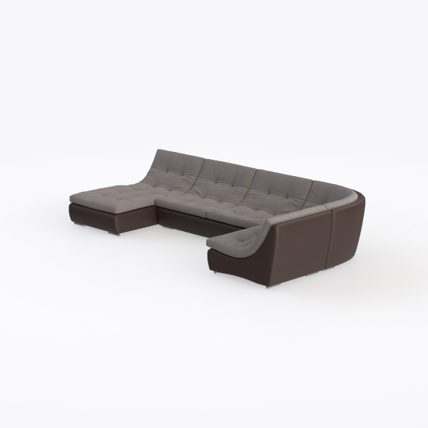Meridian Furniture 102Brown-S4C Arc Collection Modern | Contemporary Modular Sofa with Rich Brown Boucle Fabric, Deep Channel Tufting, Modular Design, 88" W x 43" D x 30" H, Brown
