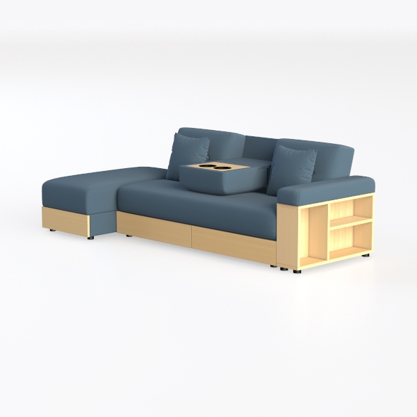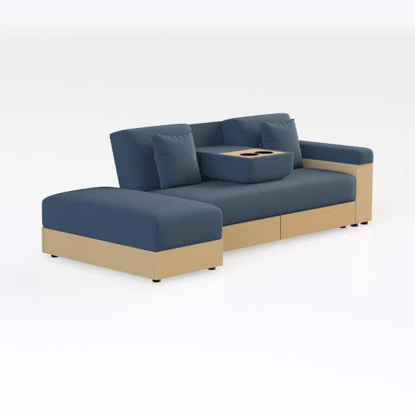 This sofa seamlessly merges modern minimalism with practical functionality, drawing inspiration from the quiet elegance of Scandinavian design and the warmth of natural materials. Its muted blue upholstery, crafted from a soft, textured fabric, offers a tactile experience of gentle comfort, while the light oak accents on the armrests and base add a subtle, organic contrast, balancing cool tones with warm earthiness. Clean, uncluttered lines define its silhouette, with a generous seat depth that invites relaxation, making every sit feel like a cozy retreat.
