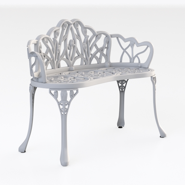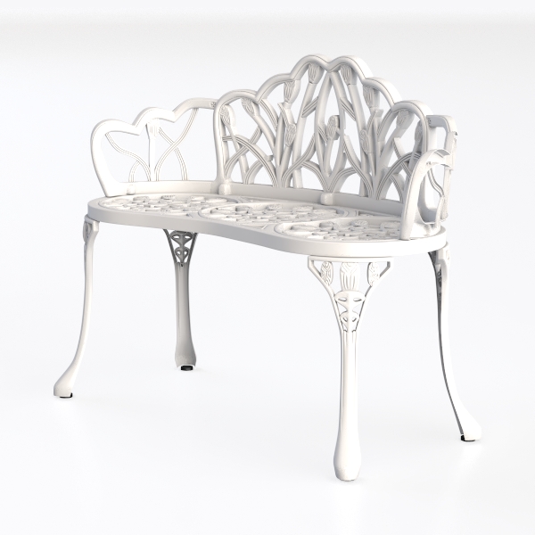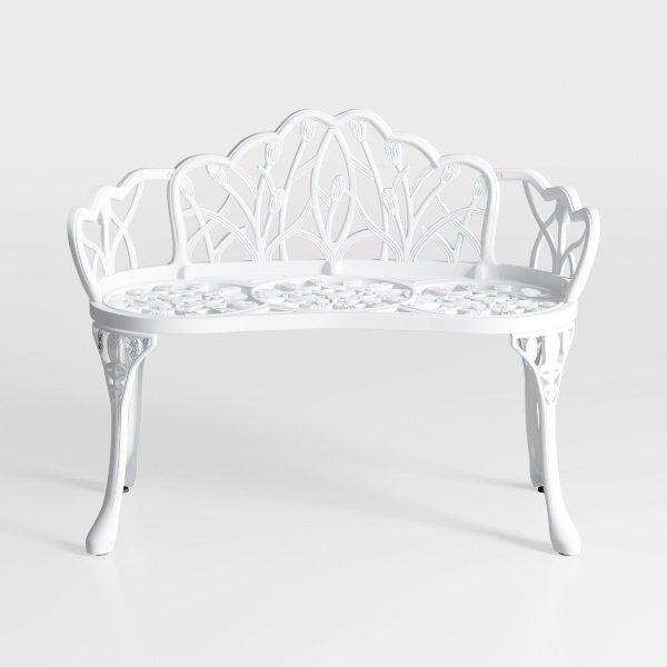 Crafted with nature-inspired details, this white bench draws from blooming flowers and winding vines. Its sleek metallic surface and intricate cut-out patterns create a light, airy feel, blending elegance with artisanal charm. Perfect for a cozy garden corner or sunlit balcony, it pairs beautifully with rustic wood planters and soft floral cushions. The curved back and spacious seat offer comfortable seating, while the delicate design adds sophistication to any space.
