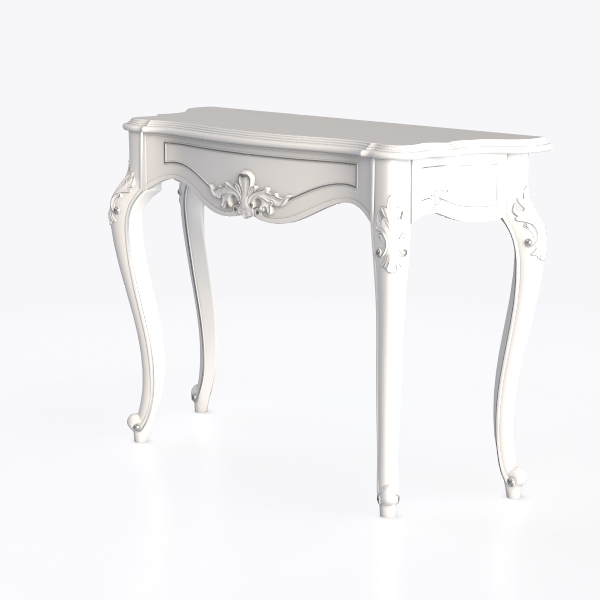 Crafted with 18th-century French classical influences, this console table blends symmetry and delicate carvings. Its smooth white finish, paired with intricate floral motifs on the front, exudes timeless elegance. Slender, curved legs add a light, airy touch, while clean lines keep it from feeling overly ornate. Ideal for a vintage living room or entryway, it pairs beautifully with velvet sofas and brass lamps, balancing style and practical storage.