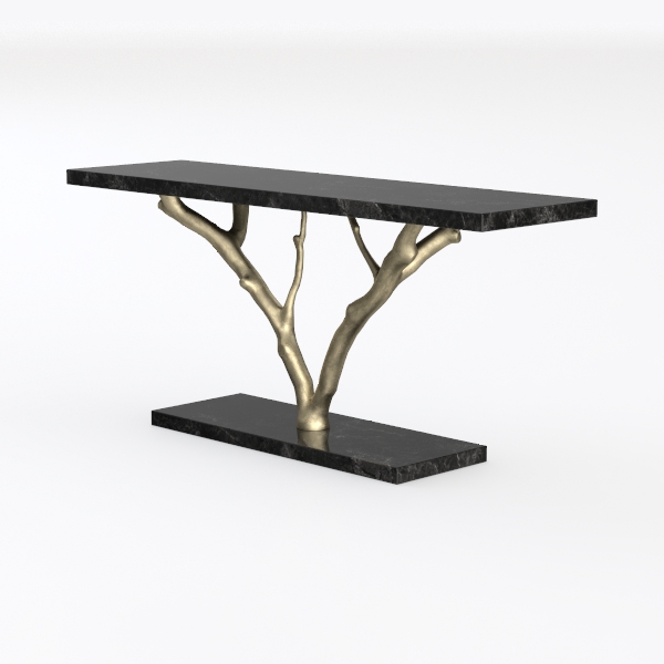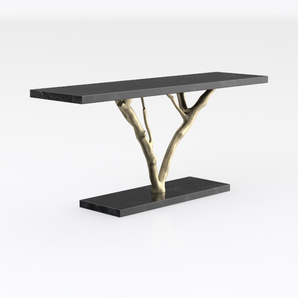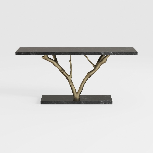 Inspired by natural tree branches, this console table blends organic beauty with modern design. The smooth black marble top contrasts elegantly with the warm, textured bronze-tone base, evoking a balance of nature and sophistication. Perfect for modern minimalist or natural-inspired living rooms, it pairs well with neutral sofas and potted plants, offering stable support and ample surface space for decor.