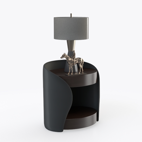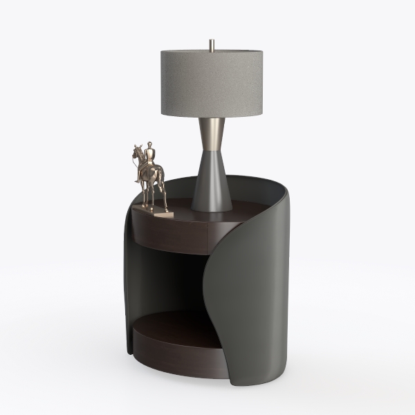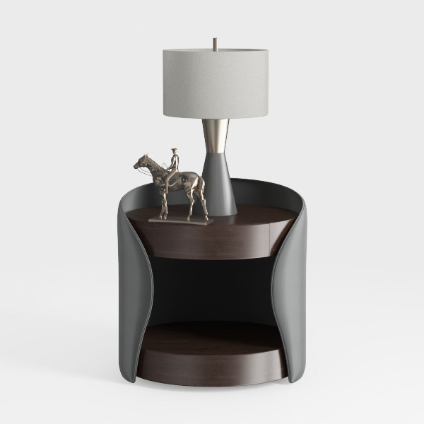 Inspired by modern minimalism and soft vintage charm, this elegant side table blends smooth, richly grained wood with sleek gray accents. Metallic lamp details add subtle luxury. Ideal for a contemporary bedroom, it pairs with marble nightstands and curated vintage decor, offering two-tiered storage for daily essentials.