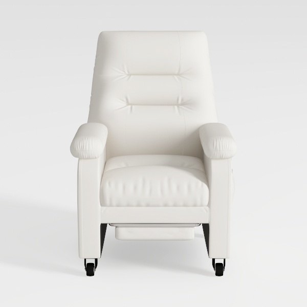 Inspired by modern minimalism, this piece merges functionality with sleek design. Its smooth, matte white surface feels soft to the touch, with subtle back tufting adding gentle texture. Clean lines and a compact footprint reflect light, brightening spaces. Ideal for modern living rooms or bedrooms, pair with light wood and warm decor. Reclining mechanism and casters boost comfort and mobility, perfect for unwinding.