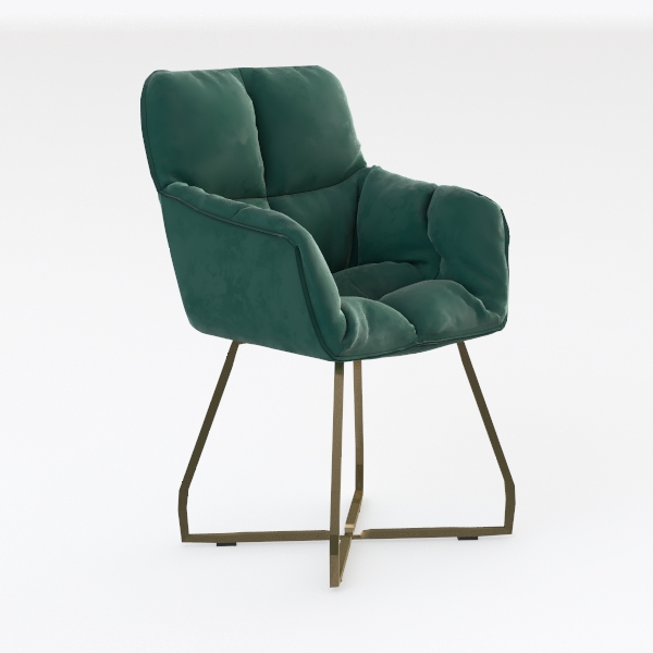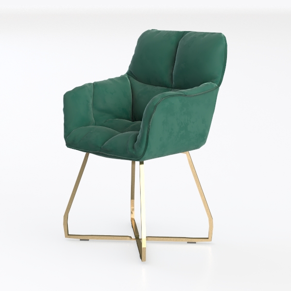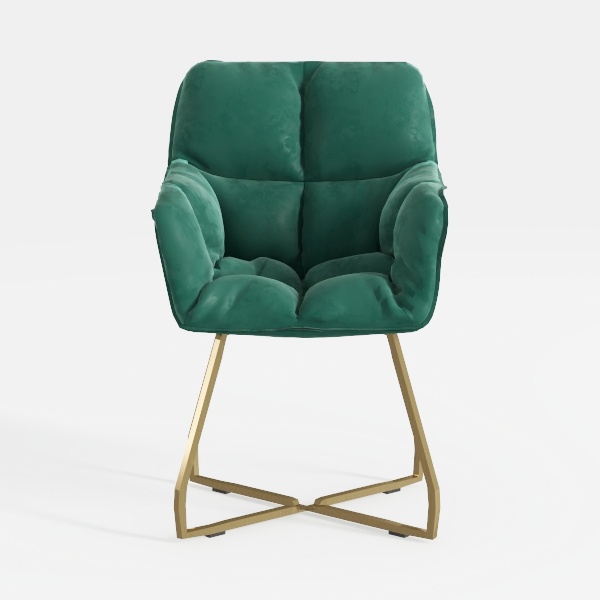 Inspired by blending vintage warmth with modern elegance, this armchair features soft, velvety emerald upholstery that feels luxurious to the touch, paired with sleek gold metal legs adding a touch of opulence. Ideal for a modern-luxury living room, it pairs beautifully with marble coffee tables and metallic lamps. The generously padded seat and curved backrest offer exceptional comfort, making it a focal point for both relaxation and style.