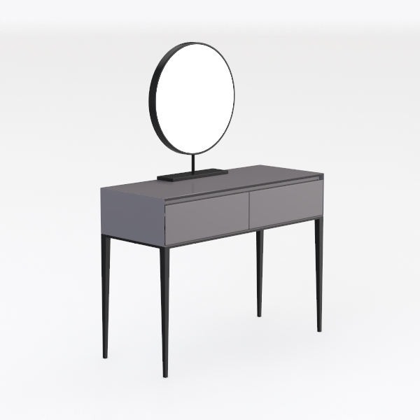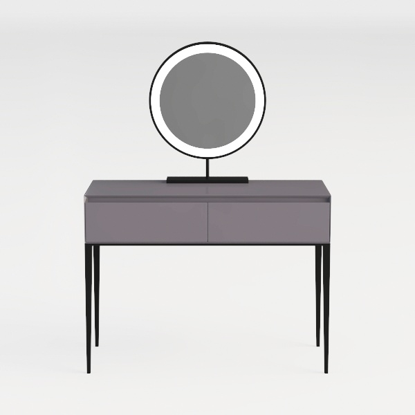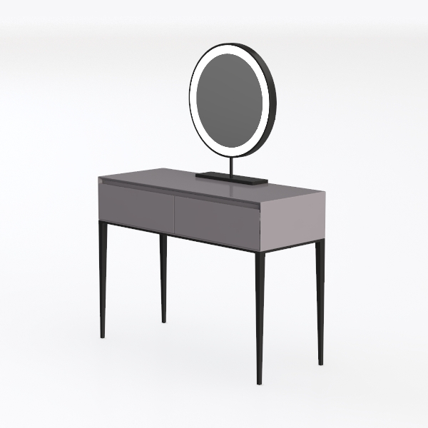 Designed to blend minimalism with functionality, this piece draws inspiration from modern living spaces, balancing sleek aesthetics and practical use. The smooth gray countertop, with subtle texture, contrasts elegantly against the slender black legs, while the circular backlit mirror adds soft ambient light. Perfect for a contemporary bedroom, it pairs beautifully with minimalist or Scandinavian decor, and ample drawer storage keeps essentials organized. Lightweight legs ensure stability without overwhelming the space.