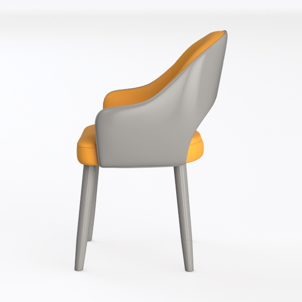 Inspired by organic curves and ergonomic design, this chair blends soft lines with modern elegance. Its buttery-soft yellow upholstery contrasts sleek matte gray legs, creating a fresh, minimalist vibe. Ideal for dining rooms or living spaces, it pairs with wooden tables and neutral decor. Plush seat and contoured back offer exceptional comfort, balancing style and functionality.
