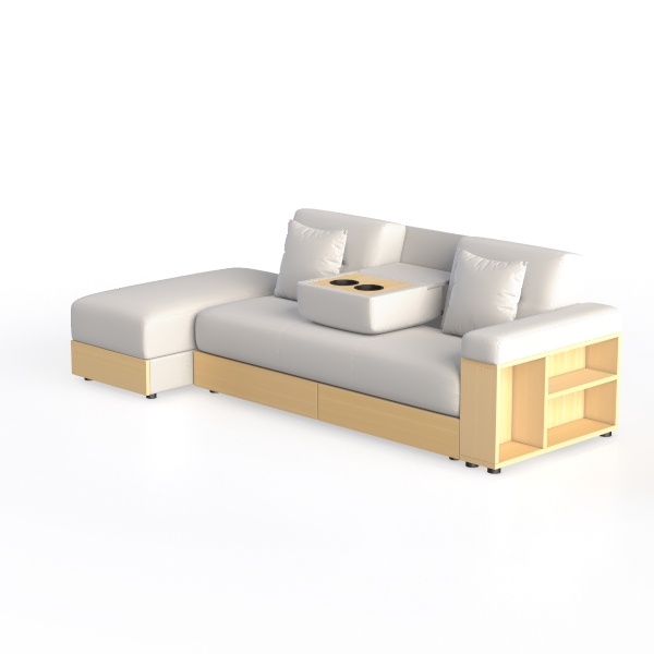 Ideal for a contemporary living room, it pairs beautifully with sleek marble or wooden coffee tables, matte black floor lamps, and soft-textured throw pillows to enhance the room’s airy, unpretentious vibe. Beyond its aesthetic, the sofa offers practicality: the generous L-shape design provides ample seating, while hidden storage drawers beneath the seat keep blankets or remotes neatly stashed. The built-in dual cup holders on the central console add convenience for casual gatherings, making this piece both a design focal point and a functional daily essential.