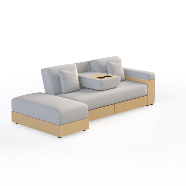 Designed to blend modern minimalism with everyday comfort, this sofa takes inspiration from the quiet harmony of natural materials and clean lines. The soft, light gray upholstery feels surprisingly plush to the touch, inviting relaxation, while the warm oak-finished wooden frame adds a subtle, earthy contrast that grounds the space. Visually, its streamlined silhouette—with integrated armrests and a compact central console—creates a sense of calm, avoiding clutter while making a gentle style statement.