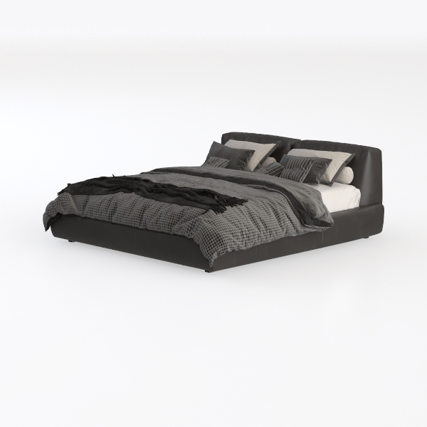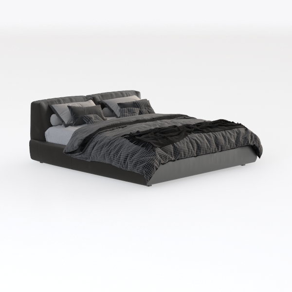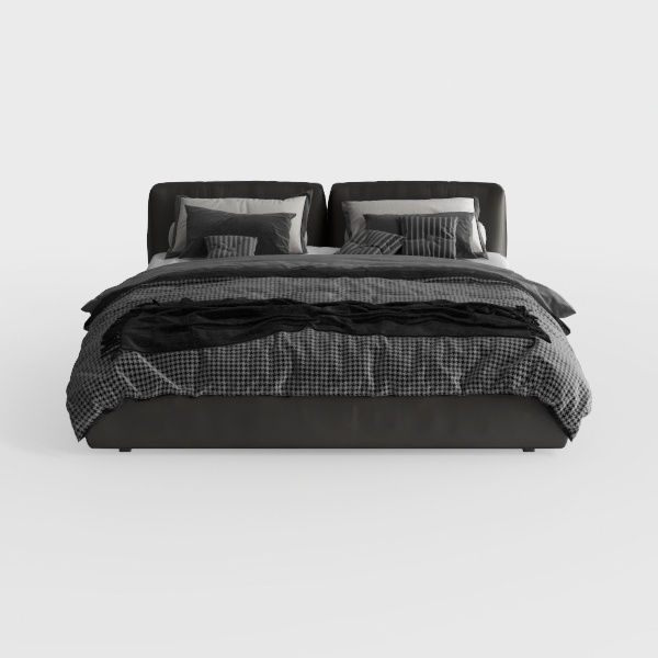 Inspired by minimalist industrial design, this bed boasts a soft leather headboard offering a warm, comfortable touch. The checkered bedspread adds subtle texture, crafting a sleek, monochrome look with depth. Ideal for modern minimalist bedrooms, it pairs beautifully with wooden nightstands and a large mirror. A sturdy frame ensures stability, while the low-profile design saves floor space, blending style and practicality seamlessly.