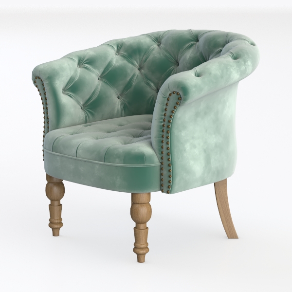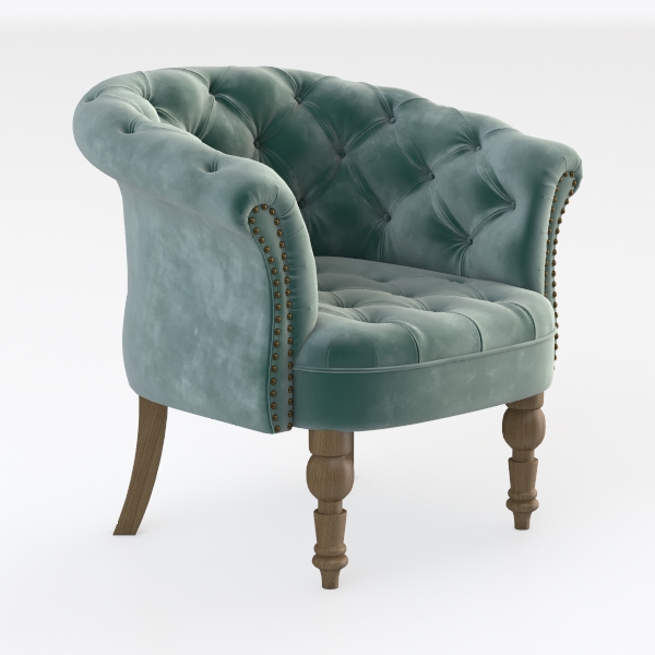 Inspired by the timeless allure of mid-century lounge chairs reimagined for modern homes, this armchair blends classic elegance with contemporary comfort. Its plush upholstery in a soft teal velvet feels incredibly inviting to the touch—silky yet dense, like resting on a cloud of gentle texture. The deep button tufting along the back and seat forms a delicate diamond pattern, while polished brass nailheads trace the armrest edges, adding subtle metallic contrast that elevates its refined charm. The warm oak legs, with their curved, tapered design, provide a sturdy, grounded base, balancing the chair’s softness with a touch of natural warmth.
