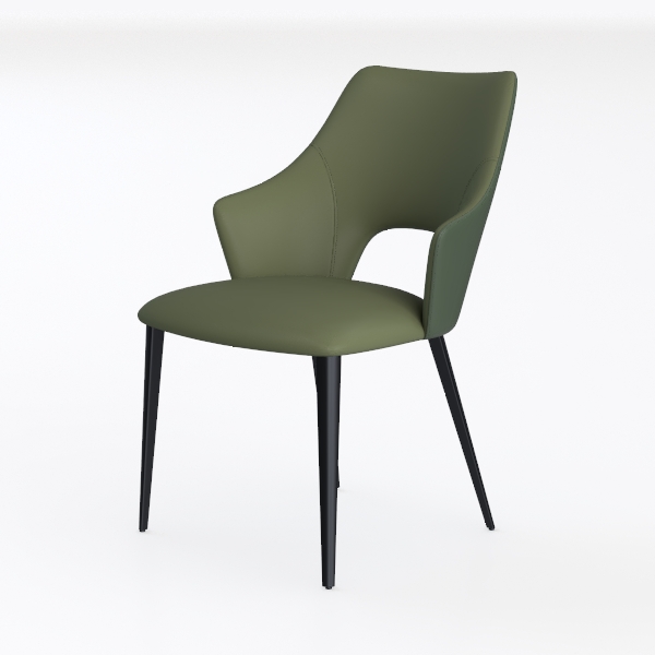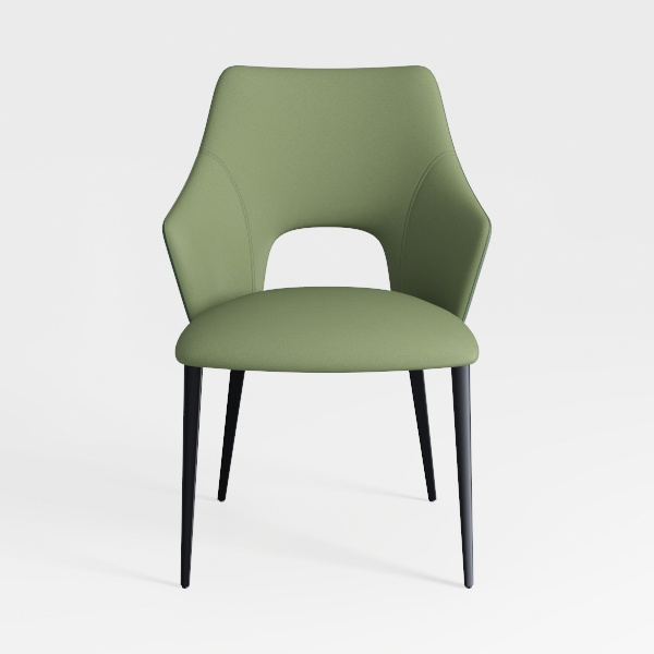 Inspired by organic curves and minimalist lines, this piece blends soft, textured upholstery in muted sage green with a clean, sculptural silhouette. The supple fabric feels gentle to the touch, while the flowing back design adds a subtle, elegant presence. Perfect for a modern dining area or minimalist living room, it pairs harmoniously with wooden tables and warm metallic accents. A plush seat and slender black legs ensure both comfort and stability, making it stylish and practical.