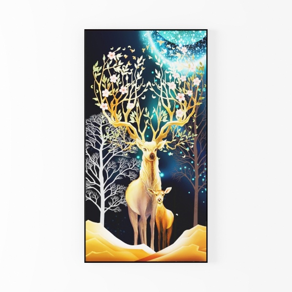 Colorful Tree of Life Canvas Wall Art - Stained Glass Mosaic Print, Framed Wall Art for Living Room Decor (Gold Framed, 24"x24"|60x60cm)