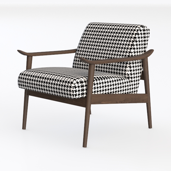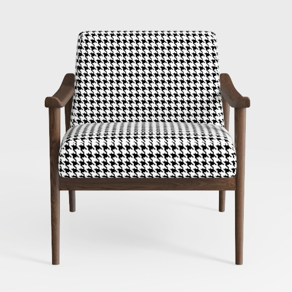 Inspired by classic houndstooth patterns, blending vintage charm with modern simplicity. The warm oak frame contrasts softly with the textural black-and-white upholstery, forming a bold, balanced silhouette. Ideal for mid-century modern or contemporary living rooms, pairing with marble tables and metal accents. Plush seat depth and ergonomic armrests offer optimal comfort.