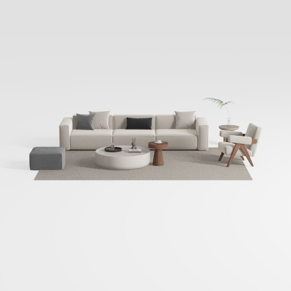 Perfect for a modern minimalist or Scandinavian-style living room, it pairs effortlessly with marble or terrazzo side tables, metallic lamp bases, or woven rugs to enhance its clean lines. The sofa’s generous depth offers deep, supportive seating for relaxation, and the open layout ensures easy movement, making it ideal for lazy afternoons, casual conversations, or unwinding with a book. Every element here feels intentional, prioritizing comfort and style in equal measure.