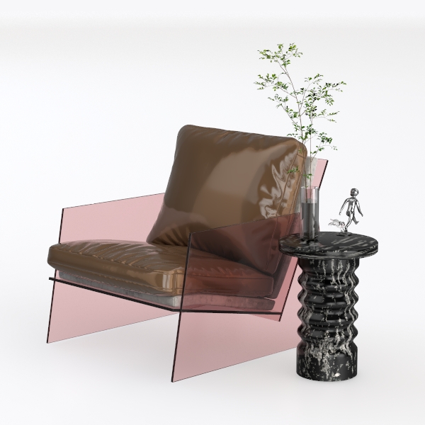 Inspired by balancing organic softness and geometric precision, this armchair features a smooth, supple brown leather seat that feels luxuriously tactile. Its clear, lightweight frame enhances an airy, modern vibe, complemented by a black marble side table with unique veining. Perfect for a modern-luxe living room, pairing beautifully with marble coffee tables and metallic accents. Generous seat depth ensures optimal comfort, while the sleek design adds sophistication without overwhelming space.
