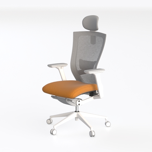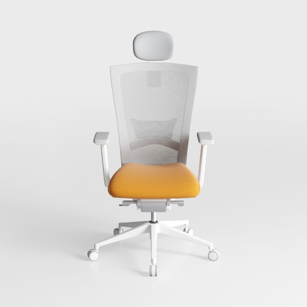 Designed for ergonomic comfort, this chair blends minimalist aesthetics with practicality. The white frame contrasts softly with the warm orange seat, while the breathable mesh back ensures lightweight support. Ideal for modern home offices or study rooms, it pairs well with sleek desks and metallic accessories. A padded headrest and smooth-rolling wheels enhance relaxation during long work hours.