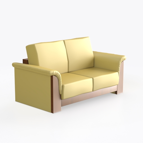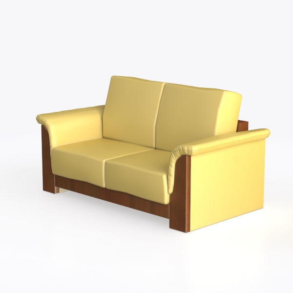 The seat and back cushions are upholstered in a smooth, buttery-soft fabric in a vibrant lemon-yellow shade, which catches light to radiate a cheerful, uplifting energy. The fabric’s texture is surprisingly lightweight yet plush, offering a tactile experience that feels as good as it looks—perfect for sinking into after a long day. Contrasting this lively hue, the armrests and base are crafted from rich, polished wood with a warm walnut finish, their smooth, grainy surface adding a grounded, organic touch that grounds the sofa in natural elegance.