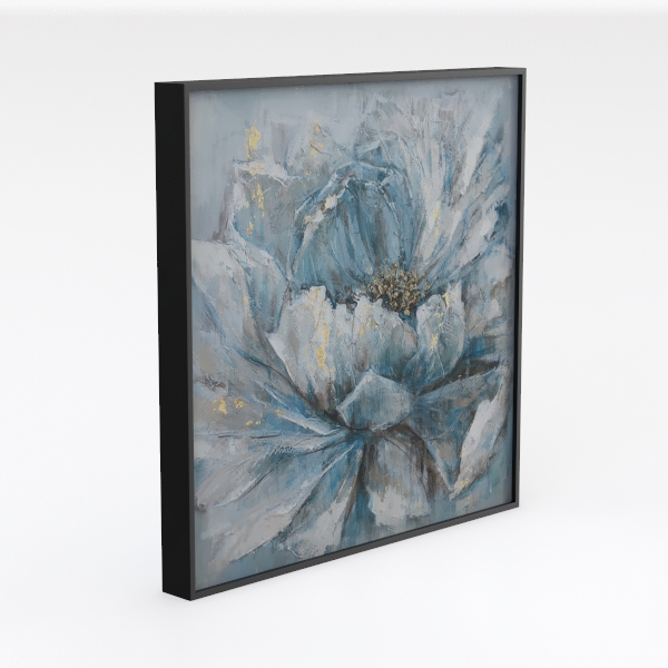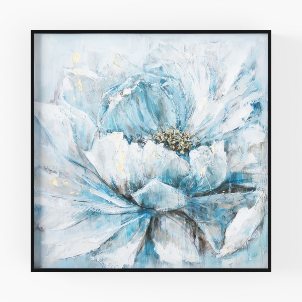 Arjun Flower Wall Art Floral Canvas Painting Teal White Gold Textured Picture Vintage Bloosom Artwork Large Framed for Living Room Bedroom Bathroom Dinning Room Kitchen Home Office Wall Decor, 40"x20"