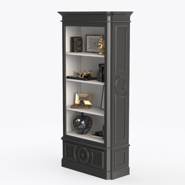 Inspired by New Classical design, this piece blends traditional craftsmanship with modern storage. Its dark, smoothly polished wooden frame offers a warm, textured touch, while the transparent glass door and white inner shelves create an elegant, layered visual. Ideal for a modern-luxury study or living room, it pairs with metal decor and leather sofas. Multi-tiered shelves display books and art, with a sturdy base for stable storage, balancing style and functionality.